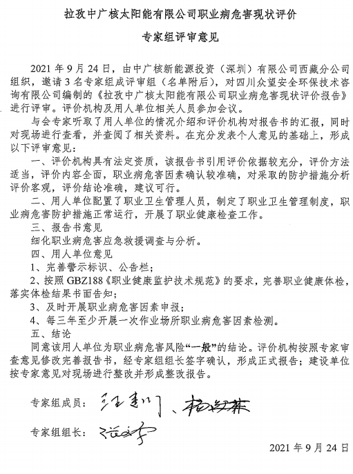 拉孜中廣核太陽能有限公司職業(yè)病危害現(xiàn)狀評價報告 |