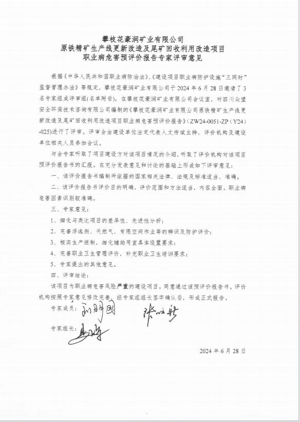 結(jié)論:擬建項(xiàng)目預(yù)評價判定為“職業(yè)病危害風(fēng)險分類嚴(yán)重”的建設(shè)項(xiàng)目。 (1)擬建項(xiàng)目選址、總體布局、生產(chǎn)工藝與設(shè)備布局、職業(yè)病防護(hù)設(shè)施設(shè)置等符合國家法律、法規(guī)和衛(wèi)生標(biāo)準(zhǔn)要求。 (2)擬建項(xiàng)目可能存在和產(chǎn)生的職業(yè)病危害因素: 物理因素:噪聲、高溫、電焊弧光、工頻電磁場; 粉塵:粉塵(游離二氧化硅高于10% 矽塵;游離二氧化硅低于10%其他粉塵)、電焊煙塵; 化學(xué)因素:硫酸、一氧化碳、二氧化碳、氮氧化物、二氧化硫、錳及其無機(jī)化合物、柴油、甲烷、氨、硫化氫、二硫化碳。 此外,擬建項(xiàng)目作業(yè)人員中控室操作電腦時存在視屏作業(yè);維修工在進(jìn)入除塵設(shè)施、料倉、球磨等相對密閉設(shè)備內(nèi)部檢維修時存在密閉(有限)空間作業(yè)危害;作業(yè)人員夏季露天對輔助設(shè)施巡檢存在夏季高溫中暑。 (3)擬建項(xiàng)目職業(yè)病危害防護(hù)設(shè)施還需根據(jù)本報(bào)告書的建議進(jìn)一步完善。 (4)擬建項(xiàng)目個體防護(hù)用品還需按照本報(bào)告書的建議進(jìn)一步完善。 (5)擬建項(xiàng)目建立了較完善的職業(yè)衛(wèi)生管理體系,有較完整職業(yè)健康監(jiān)護(hù)制度,職業(yè)衛(wèi)生管理基本能滿足職工職業(yè)病防治工作需要,但還需補(bǔ)充職業(yè)病防治專項(xiàng)經(jīng)費(fèi)預(yù)算,在投產(chǎn)后完善現(xiàn)場警示標(biāo)識設(shè)置,完善職業(yè)健康監(jiān)護(hù)及應(yīng)急救援。 建議: (1)在擬建項(xiàng)目施工前,建設(shè)單位應(yīng)當(dāng)根據(jù)擬建項(xiàng)目具體情況進(jìn)行職業(yè)病防護(hù)設(shè)施設(shè)計(jì),并由建設(shè)單位主要負(fù)責(zé)人或其指定的負(fù)責(zé)人組織職業(yè)衛(wèi)生專業(yè)技術(shù)人員對職業(yè)病防護(hù)設(shè)施設(shè)計(jì)進(jìn)行評審,職業(yè)病防護(hù)設(shè)施設(shè)計(jì)工作過程應(yīng)當(dāng)形成書面報(bào)告?zhèn)洳椤?/p> (2)根據(jù)《建設(shè)項(xiàng)目職業(yè)病防護(hù)設(shè)施“三同時”監(jiān)督管理辦法》(安全生產(chǎn)監(jiān)督管理總局令第90號),建設(shè)項(xiàng)目在竣工驗(yàn)收前或者試運(yùn)行期間(不少于30日,最長不得超過180日),建設(shè)單位應(yīng)當(dāng)進(jìn)行職業(yè)病危害控制效果評價,編制評價報(bào)告;建設(shè)單位主要負(fù)責(zé)人或其指定的負(fù)責(zé)人應(yīng)當(dāng)組織職業(yè)衛(wèi)生專業(yè)技術(shù)人員對職業(yè)病危害控制效果評價報(bào)告進(jìn)行評審以及對職業(yè)病防護(hù)設(shè)施進(jìn)行驗(yàn)收,并按照評審與驗(yàn)收意見對職業(yè)病危害控制效果評價報(bào)告和職業(yè)病防護(hù)設(shè)施進(jìn)行整改完善;建設(shè)項(xiàng)目職業(yè)病防護(hù)設(shè)施未按照規(guī)定驗(yàn)收合格的,不得投入生產(chǎn)或者使用。 (3)根據(jù)《工作場所職業(yè)衛(wèi)生管理規(guī)定》(國家健康委員會令第5號)第二十條規(guī)定:職業(yè)病危害嚴(yán)重的用人單位,應(yīng)當(dāng)委托具有相應(yīng)資質(zhì)的職業(yè)衛(wèi)生技術(shù)服務(wù)機(jī)構(gòu),每年至少進(jìn)行一次職業(yè)病危害因素檢測,每三年至少進(jìn)行一次職業(yè)病危害現(xiàn)狀評價。 (4)根據(jù)《職業(yè)病危害項(xiàng)目申報(bào)辦法》(國家安全生產(chǎn)監(jiān)督管理總局令〔2012〕第48號)第四條規(guī)定,應(yīng)當(dāng)向當(dāng)?shù)匦l(wèi)生健康主管部門申報(bào)職業(yè)危害因素。因技術(shù)、工藝、設(shè)備或者材料等發(fā)生變化導(dǎo)致原申報(bào)的職業(yè)病危害因素及其相關(guān)內(nèi)容發(fā)生重大變化的,自發(fā)生變化之日起15日內(nèi)進(jìn)行申報(bào)。 (5)擬建項(xiàng)目應(yīng)根據(jù)《國家安全監(jiān)管總局辦公廳關(guān)于印發(fā)職業(yè)衛(wèi)生檔案管理規(guī)范的通知》(安監(jiān)總廳安監(jiān)〔2013〕171號)的要求建立職業(yè)衛(wèi)生“三同時”檔案、職業(yè)衛(wèi)生管理檔案、職業(yè)衛(wèi)生宣傳培訓(xùn)檔案、職業(yè)病危害因素監(jiān)測與檢測評價檔案、用人單位職業(yè)健康監(jiān)護(hù)檔案、勞動者個人職業(yè)健康監(jiān)護(hù)檔案。 (6)建設(shè)單位在擬建項(xiàng)目施工招標(biāo)、合同管理及施工過程中應(yīng)當(dāng)監(jiān)管施工單位的職業(yè)衛(wèi)生管理。監(jiān)督施工單位落實(shí)施工期職業(yè)病危害因素檢測、職業(yè)健康監(jiān)護(hù)、職業(yè)衛(wèi)生管理等內(nèi)容,建設(shè)單位在施工和設(shè)備安裝調(diào)試結(jié)束后,應(yīng)收集施工過程的職業(yè)病危害防治總結(jié)報(bào)告。 (7)根據(jù)《工作場所職業(yè)衛(wèi)生管理規(guī)定》(國家健康委員會令第5號)第二十六條規(guī)定:任何單位和個人不得將產(chǎn)生職業(yè)病危害的作業(yè)轉(zhuǎn)移給不具備職業(yè)病防護(hù)條件的單位和個人。不具備職業(yè)病防護(hù)條件的單位和個人不得接受產(chǎn)生職業(yè)病危害的作業(yè)。該用人單位生產(chǎn)過程中需要外委作業(yè)的,應(yīng)要求外委作業(yè)單位具備相應(yīng)的職業(yè)病防護(hù)條件,并要求外委作業(yè)單位為其外委作業(yè)