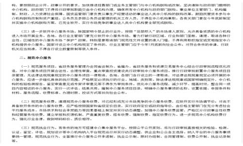 ?。ㄈ┻M(jìn)一步放開中介服務(wù)市場。除國家明令禁止的行業(yè)外,按照“非禁即入”的市場準(zhǔn)入原則,允許具備資質(zhì)的中介機(jī)構(gòu)進(jìn)入市場開展業(yè)務(wù)。各地、各行業(yè)主管部門要充分放開中介服務(wù)市場,著力打破行政區(qū)域、行業(yè)和部門壟斷,清理、取消各種行業(yè)性、區(qū)域性的中介服務(wù)市場“保護(hù)”政策,特別是要取消部門規(guī)范性文件設(shè)置的準(zhǔn)入門檻,不得利用職權(quán)指定或變相指定中介機(jī)構(gòu)提供中介服務(wù)。國家對設(shè)立中介機(jī)構(gòu)規(guī)定了條件的,行業(yè)主管部門應(yīng)于今年7月底前向社會公布;對符合條件的申請,行政機(jī)關(guān)應(yīng)當(dāng)批準(zhǔn),不得自行設(shè)立數(shù)量限制等禁入條件。