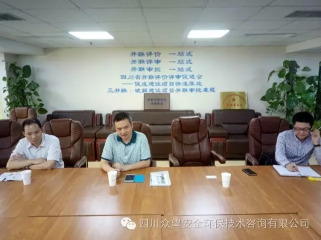 2016年9月7日,四川省輕工業(yè)設(shè)計院院長黃明剛,副院長陳勇,總工程師陳小平一行三人到四川省眾望安全環(huán)保技術(shù)咨詢有限公司參觀考察,隨后與四川眾望公司總經(jīng)理潘祖高,副總經(jīng)理朱子剛、張宏、李圣興等親切交談,共商深度合作事宜。