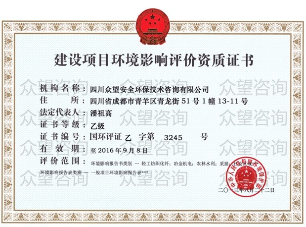 四川眾望安全環(huán)保技術(shù)咨詢有限公司 電 話:028-86258172/86258173/028-86258174/86258095 傳 真:028-86258093/86258552